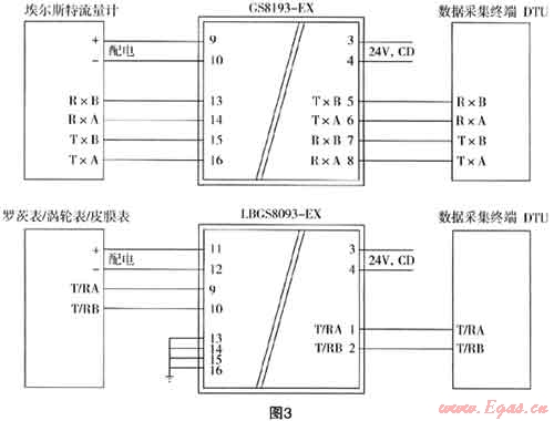 埃爾斯特流量計(jì)采用的是六線(xiàn)制輸出,一般采用GS8193-EX系列安全柵,同時(shí)配裝信號(hào)浪涌保護(hù)器。