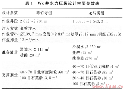 2.1 Wx井壓裂設計參數(shù)