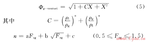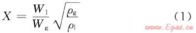 式中Wg為氣相的質(zhì)量流量;W1為液相的質(zhì)量流量;ρg為氣相的工況密度;ρ1為液相的工況密度。