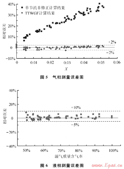 采用傳統(tǒng)的單相氣體流量?jī)x表計(jì)量濕氣,由于液相的存在將造成較大的測(cè)量誤差。例如利用孔板測(cè)量濕氣,液相體積分?jǐn)?shù)為1%時(shí),會(huì)造成約10%的測(cè)量誤差。