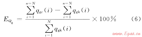 式中qgc(i)為第i個(gè)小時(shí)的測(cè)試樣機(jī)氣相測(cè)量流量,m3;qgk(i)為第i個(gè)小時(shí)的孔板氣相測(cè)量流量,m3;N為比對(duì)總的小時(shí)數(shù)。