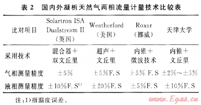 表2為英國(guó)Solartron ISA公司、美國(guó)Weatherford公司與挪威Roxar公司濕氣流量計(jì)產(chǎn)品技術(shù)指標(biāo)與天津大學(xué)濕氣測(cè)量技術(shù)水平的比較。