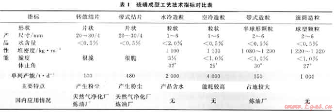 由硫磺成型工藝比較(表1)可見,凈化廠若采用單列產(chǎn)能500~1000t/a的硫磺成型工藝,需10余臺硫磺成型裝置,占地面積大,運行及維護(hù)成本高。單列產(chǎn)能2000t/d以上工藝相互對比,空冷造粒工藝能耗高,硫磺脆度大,在運輸過程中易形成粉塵,帶來火災(zāi)、爆炸隱患;而經(jīng)水冷造粒成型的硫磺,硬度大,含水,不易產(chǎn)生粉塵。因此,凈化廠采用國內(nèi)首套濕法硫磺成型工藝,建成4套DEVC0濕法成型機(jī),產(chǎn)能360t/h,硫磺適宜的含水量降低了生產(chǎn)及裝車過程的粉塵,安全性能高。