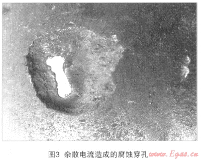 實(shí)際上,城市燃?xì)夤艿乐苓呁嬖趶?qiáng)烈的雜散電流[3],對(duì)在役管道的開(kāi)挖檢測(cè)發(fā)現(xiàn),許多腐蝕坑呈馬蹄型并見(jiàn)金屬光澤,剖面雖有起伏,但手感光滑,邊緣也較清晰,腐蝕產(chǎn)物為黑色粉末狀,無(wú)分層現(xiàn)象,就是典型的雜散電流腐蝕(圖3)。
