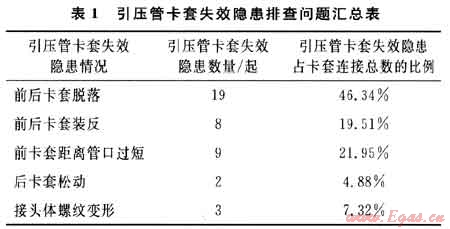 4) 安裝過程中易將前、后卡套裝反或漏裝,導致引壓管蹦出。
