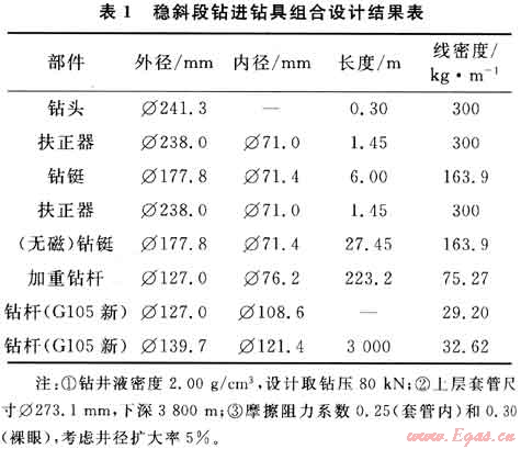 穩(wěn)斜段鉆進(jìn)鉆具組合設(shè)計結(jié)果如表1所示。