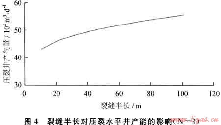 4) 裂縫不是越長(zhǎng)越好,壓裂井產(chǎn)能增長(zhǎng)幅度隨縫長(zhǎng)增加而下降。