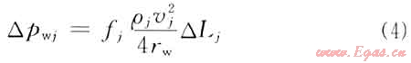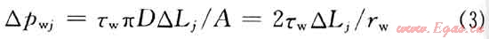 其中△pwj為壁面剪切應(yīng)力造成的摩擦壓力降。即