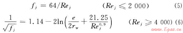 fj為第j段水平井筒壁面摩擦系數(shù),可由下式計(jì)算得到: