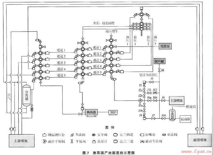 2) 采用三級節(jié)流測試流程,充分利用鉆井壓井和節(jié)流管匯與測試流程組成壓井、堵漏管網(wǎng),配齊備用液控平板閥和節(jié)流閥、油嘴套和油嘴。