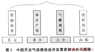 中國地質(zhì)條件比北美復(fù)雜,頁巖氣勘探開發(fā)僅處于起步階段,還有許多技術(shù)和政策問題需要探索。從北美的經(jīng)驗看,頁巖氣的勘探開發(fā)具有“高技術(shù)、高投入、低成本、長周期”的特點。頁巖氣能否成為中國天然氣勘探開發(fā)的后備領(lǐng)域,能否形成產(chǎn)業(yè)化規(guī)模并為調(diào)整和優(yōu)化能源結(jié)構(gòu)、緩減天然氣供需矛盾作出貢獻,至少需要解決以下4個問題:①中國是否存在頁巖氣,即“有無”問題;②頁巖氣的單井產(chǎn)量有多高,即“多少”問題;③頁巖氣藏的規(guī)模有多大,即“大小”問題;④開采頁巖氣的成本是否劃算,即“高低”問題(圖1)。