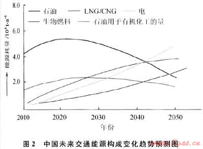 在向低碳能源轉(zhuǎn)型的歷史時期,目前還占世界一次能源消費首位(35%)、主要用于交通燃料的石油大部分將在2050年被其他低碳清潔能源所替代。圖2是中國未來交通能源構(gòu)成變化趨勢預(yù)測圖。事實上,2011年3月21日歐盟委員會已向歐洲議會提出了“2050年禁止使用汽柴油車,2030年汽柴油車使用減半”的法案。IEA估計生物燃料將于2040年成為主力航空燃料,到2050年其應(yīng)用將占全球運輸業(yè)的25%。國際天然氣汽車協(xié)會預(yù)計世界天然氣交通工具將以年增17.8%的速度增長,到2020年將達(dá)6500萬輛,約為2005年汽車總量的9%。隨著科技進步的加速,上述轉(zhuǎn)型的進程很可能還將加快。