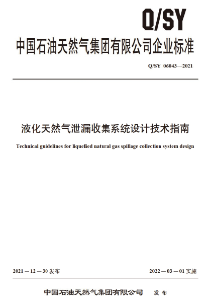 本文件提出了陸上液化天然氣站場(chǎng)泄漏收集點(diǎn)、設(shè)計(jì)泄漏量、收集盤或地坪、收集管(溝)、集液池及輔助設(shè)施的設(shè)計(jì)要求。